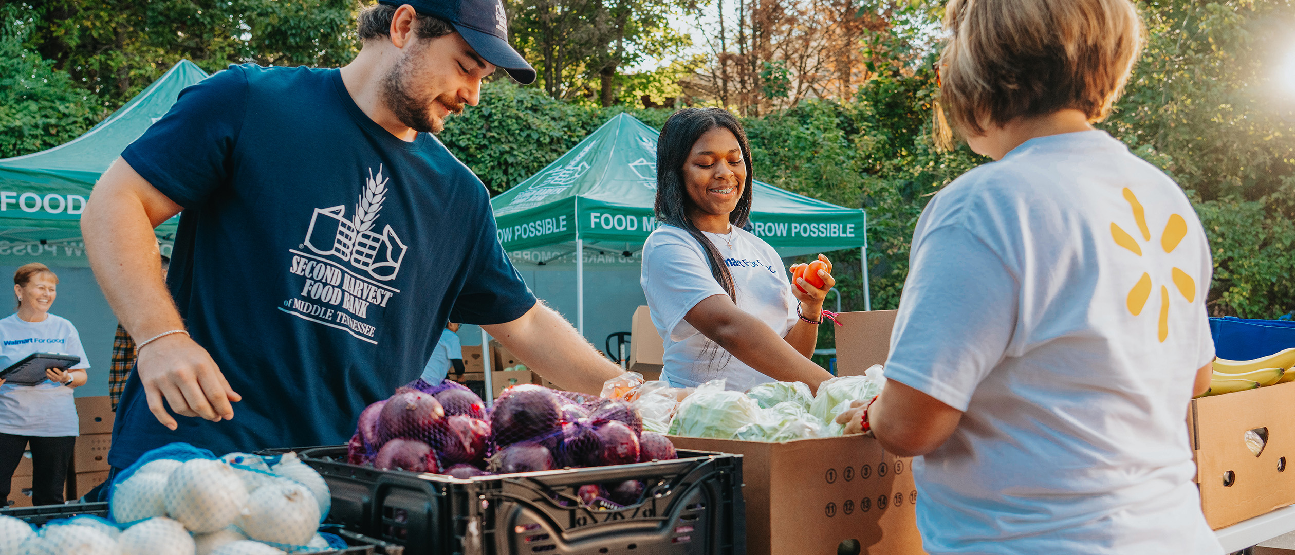 Local organizations are often the first to see who needs support and how needs are changing. Food banks — like Second Harvest of Middle Tennessee, Island Harvest Food Bank in Long Island, North Texas Food Bank and others across the country — can respond quickly to sudden life changes and events or natural disasters. Schools provide meals that may be the most reliable nutrition a child receives all day. Health clinics connect patients to food resources alongside medical care. And since around 90% of Americans live within 10 miles of a Walmart store, Walmart is uniquely positioned to improve food access through donations and community programs in local communities.